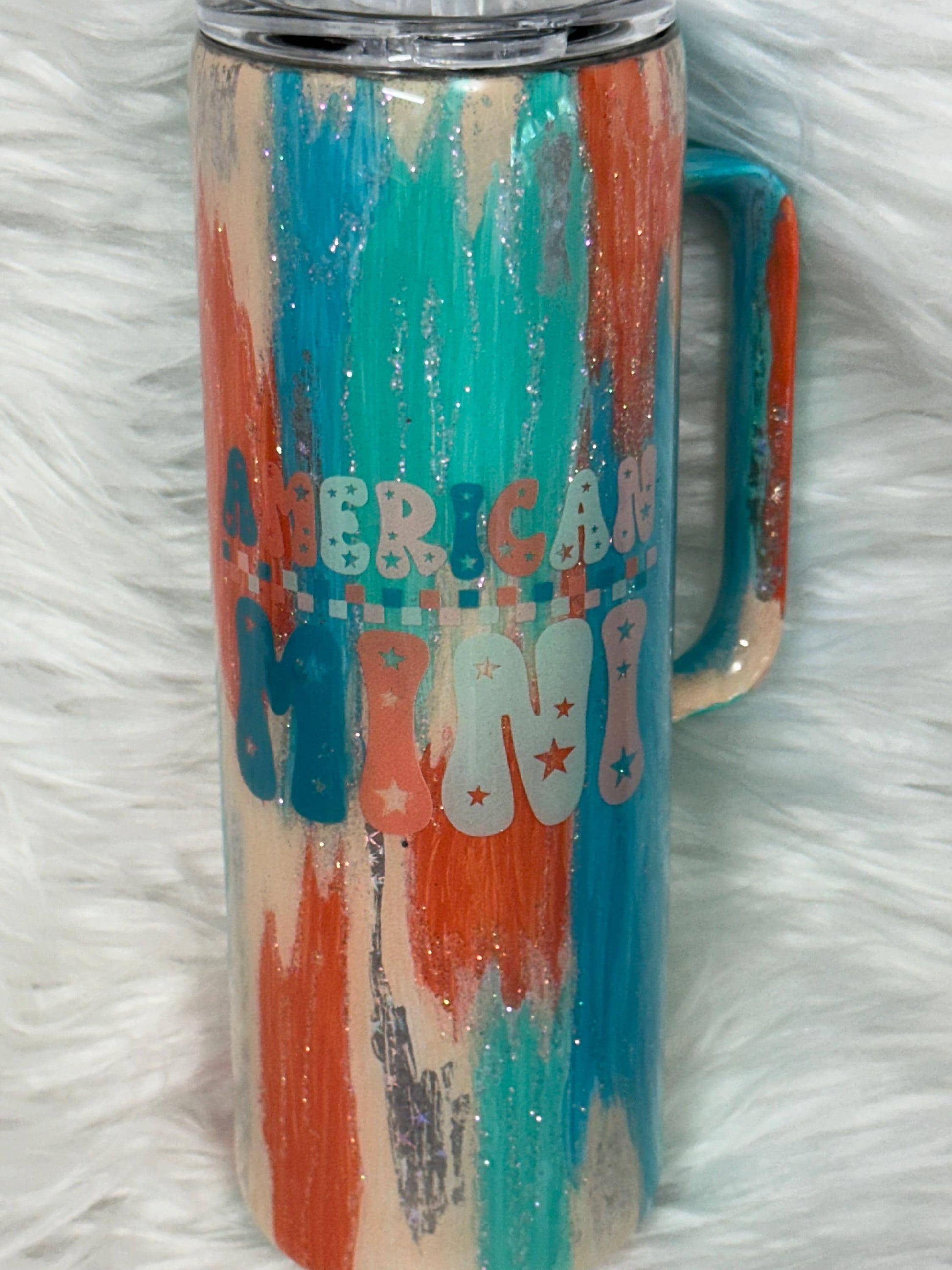 20oz stainless steel epoxy drinking tumbler with UVDTF and paints and sparkle with lid and straw