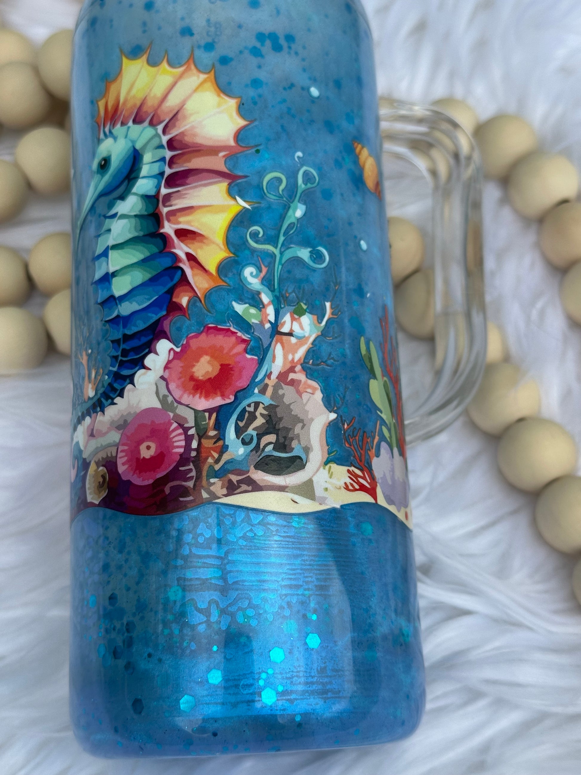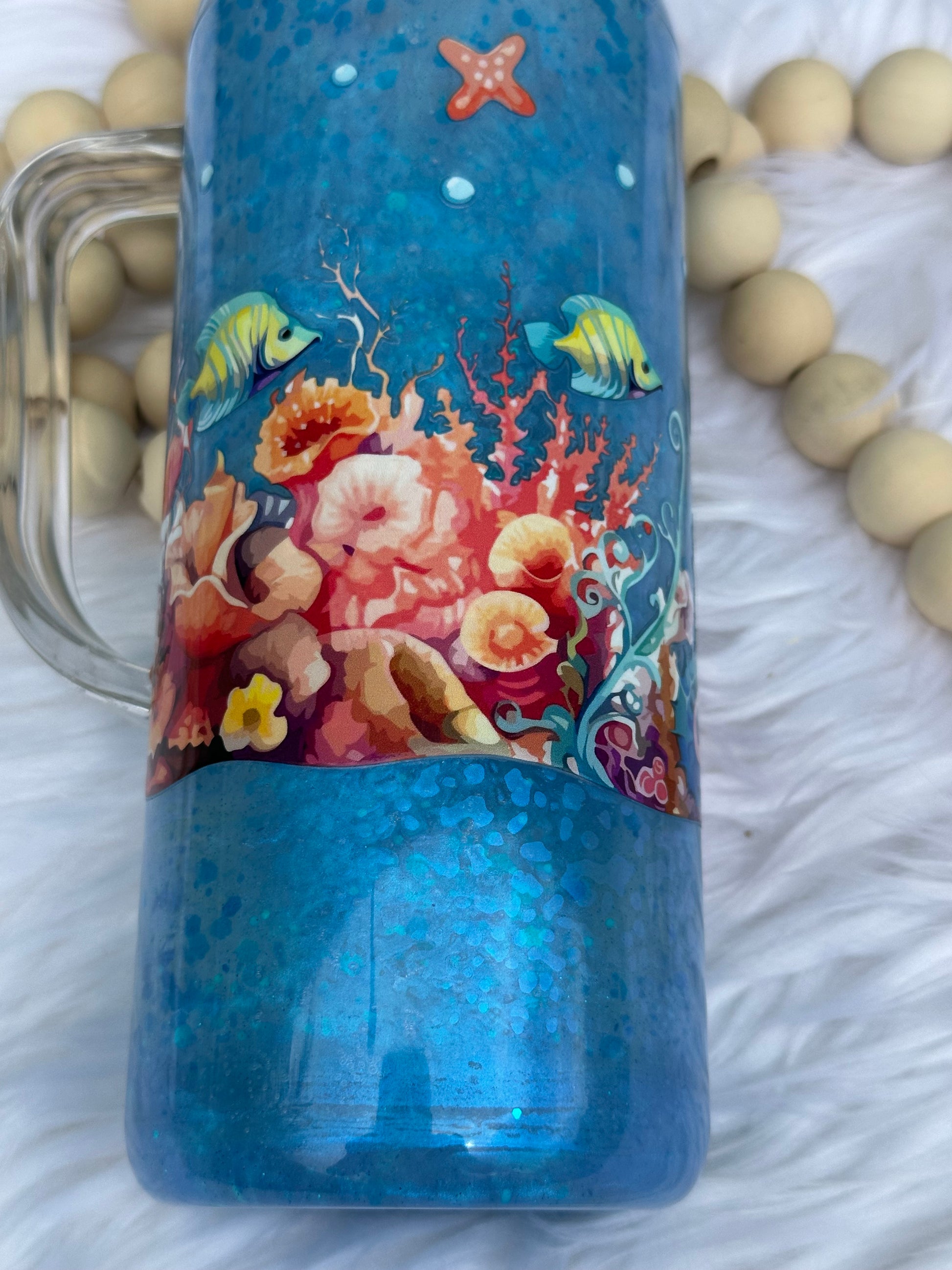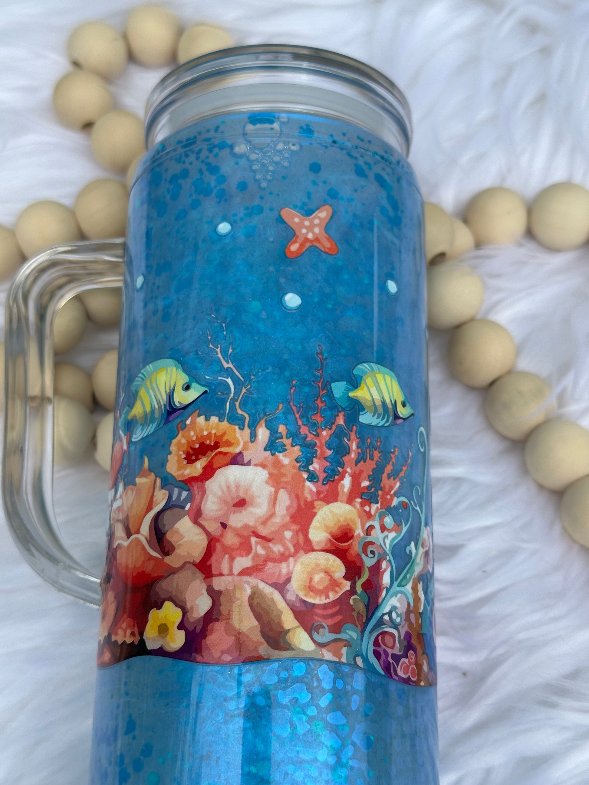 20oz with snow globe cat eye with handle and ocean UVDTF, comes with lid and straw,