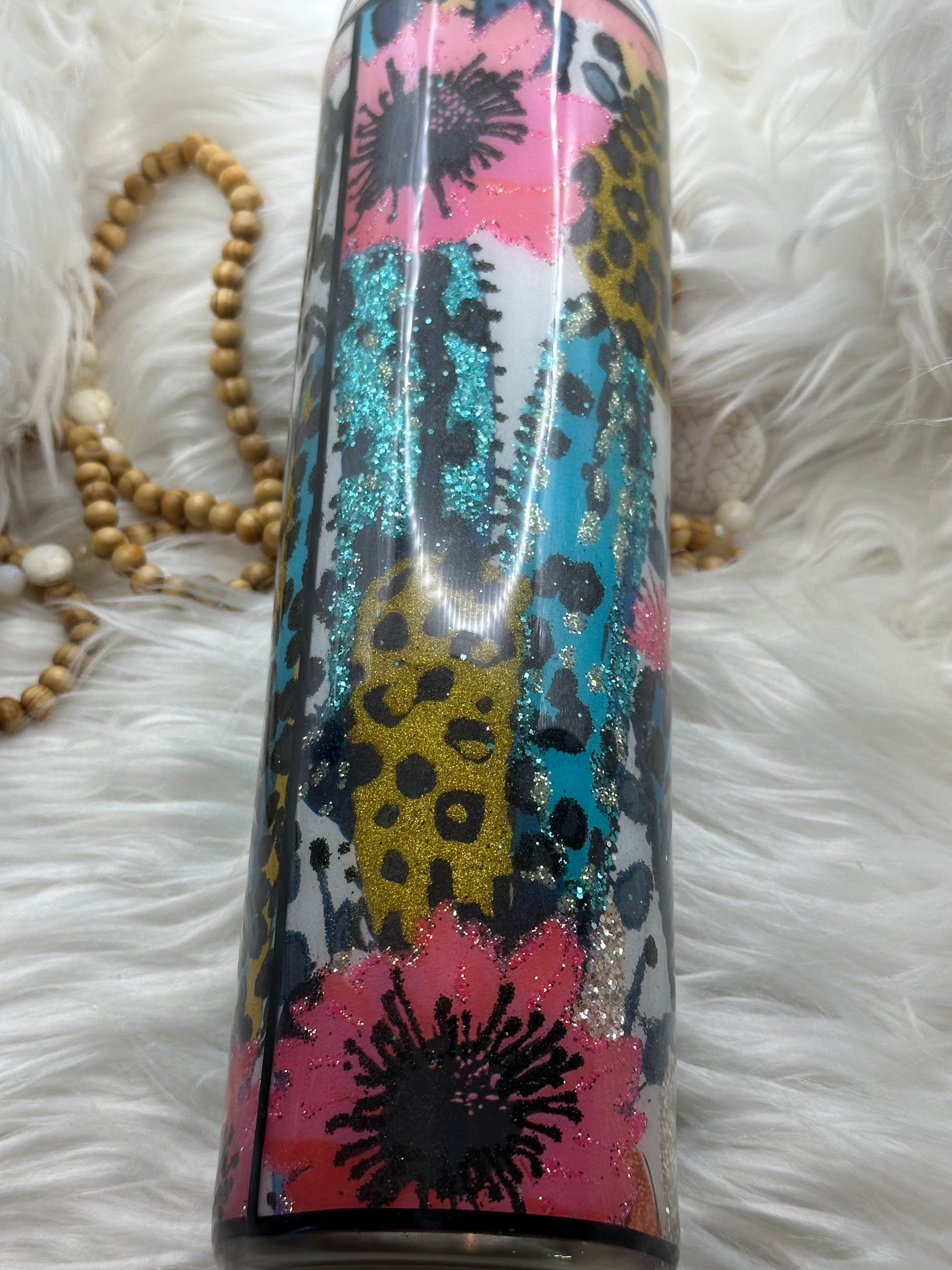 30oz epoxy stainless steel drinking tumbler with vinyl glitter comes with lid and straw