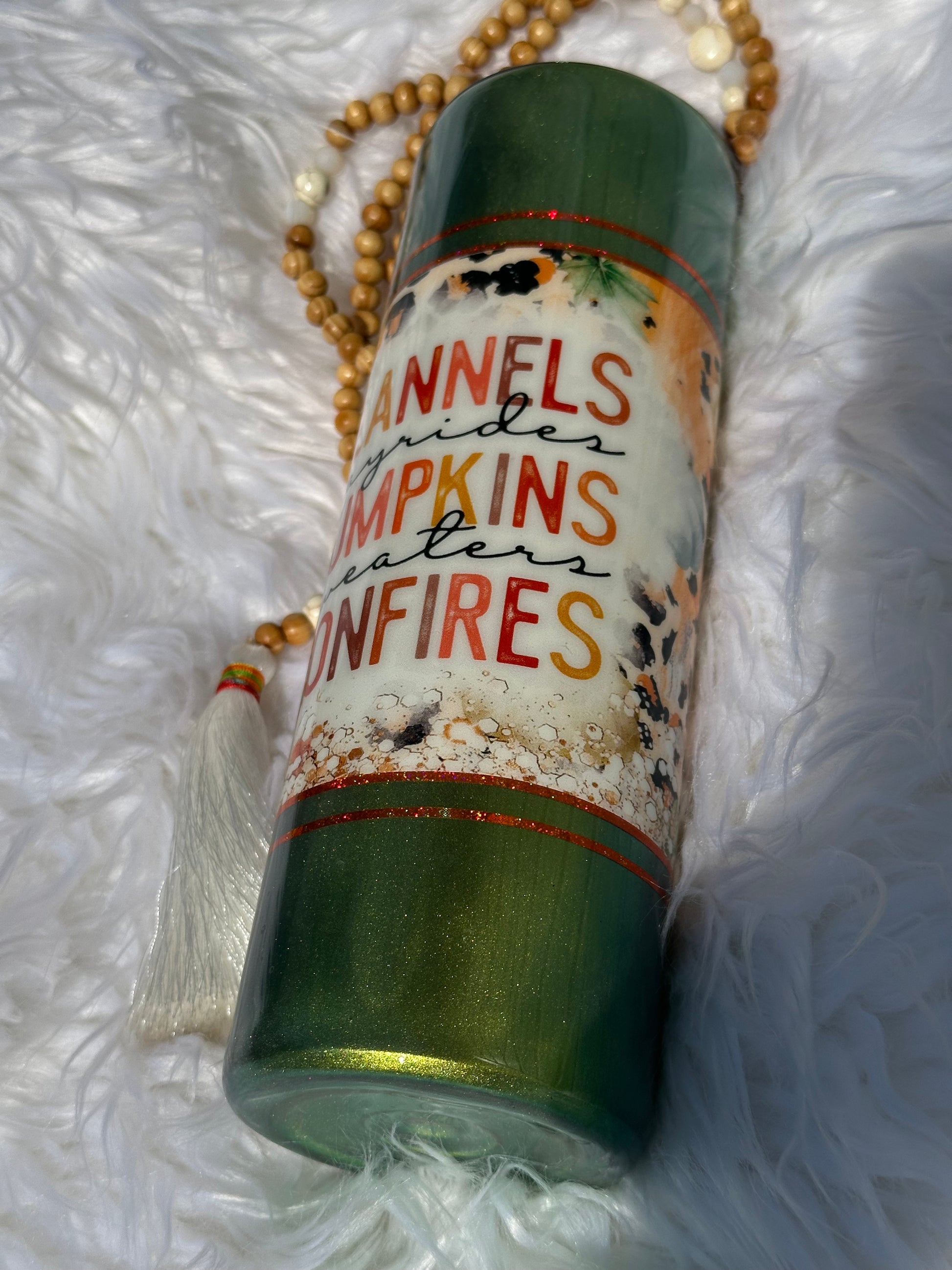 Fall Tumbler,double walled stainless steel, comes with lid and straw,has epoxy and UVDTF