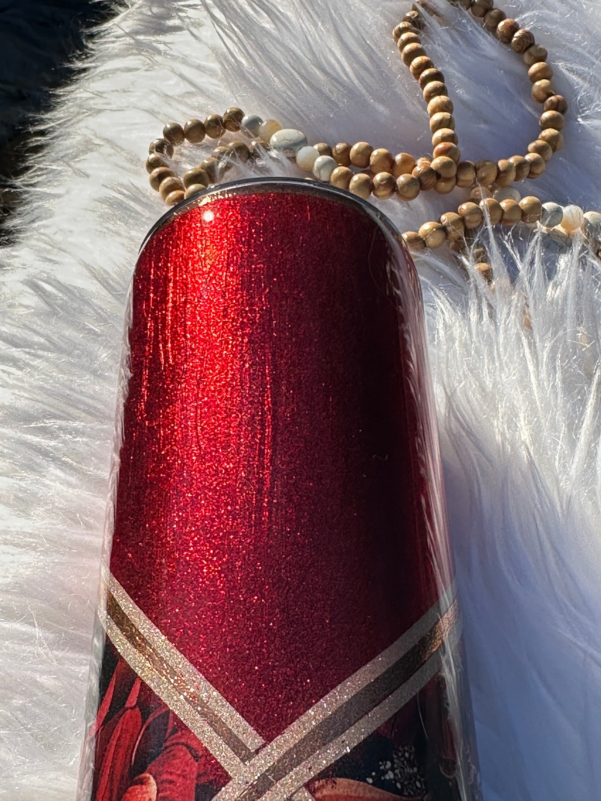 20oz epoxy tumbler stainless steel with peony, and pigment powder comes with lid and straw