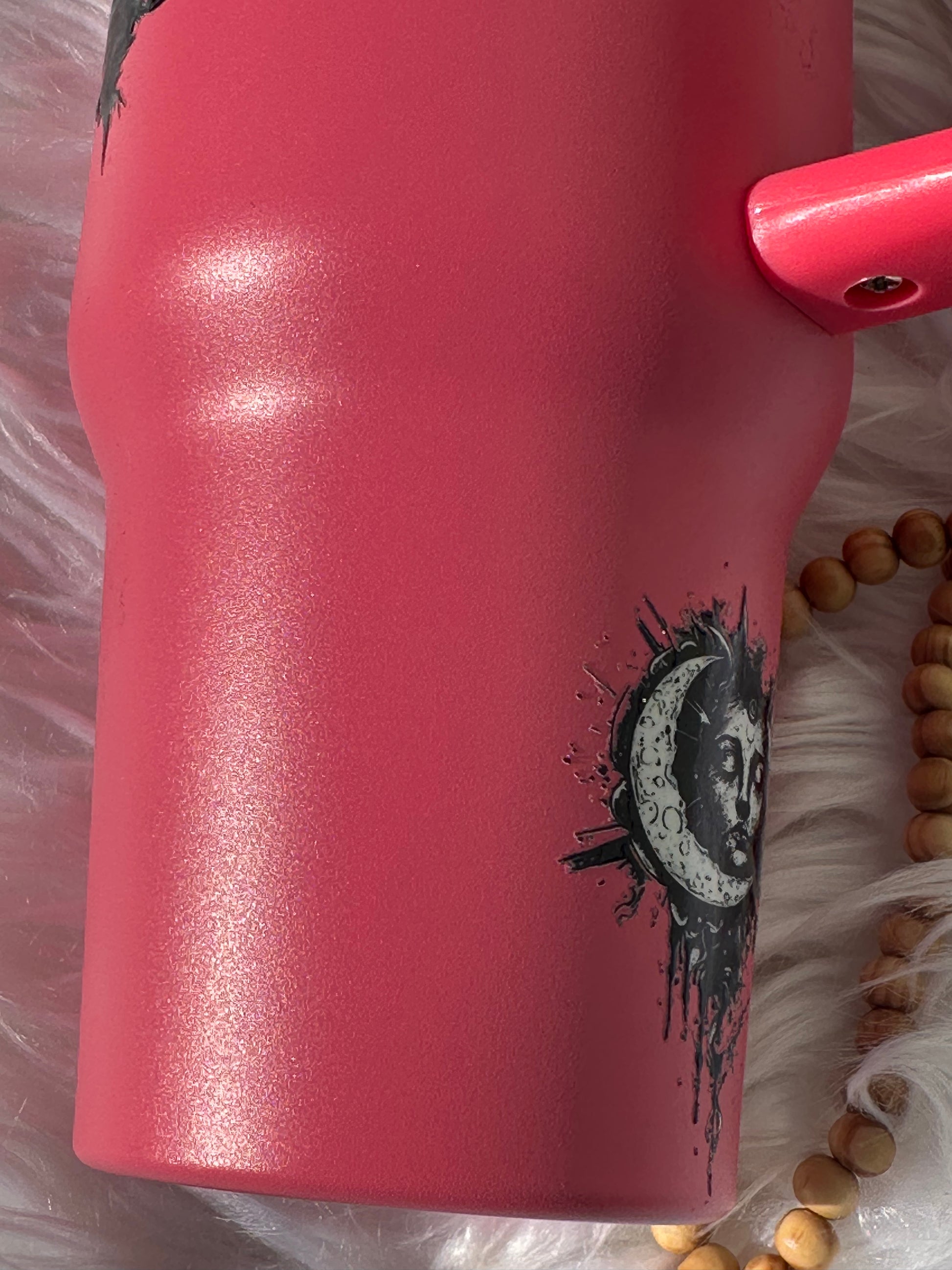 30oz drinking tumbler stainless steel no epoxy with skulls and sunflower comes with lid and straw